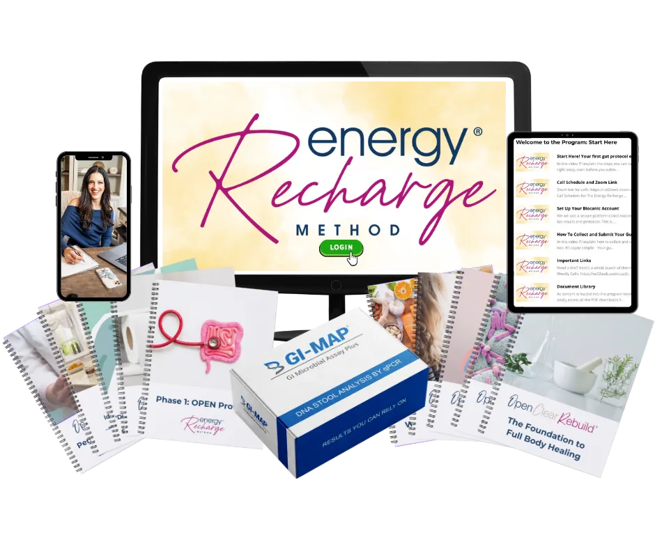 The Energy Recharge Method is a program designed to boost your brain function, improve energy levels, and repair digestive health through a comprehensive gut microbiome lab test, customizable protocols and group coaching sessions. It empowers participants with the knowledge and tools to address the root causes of energy depletion, brain symptoms, digestive issues and health conditions.